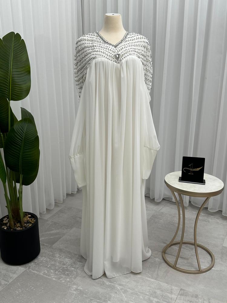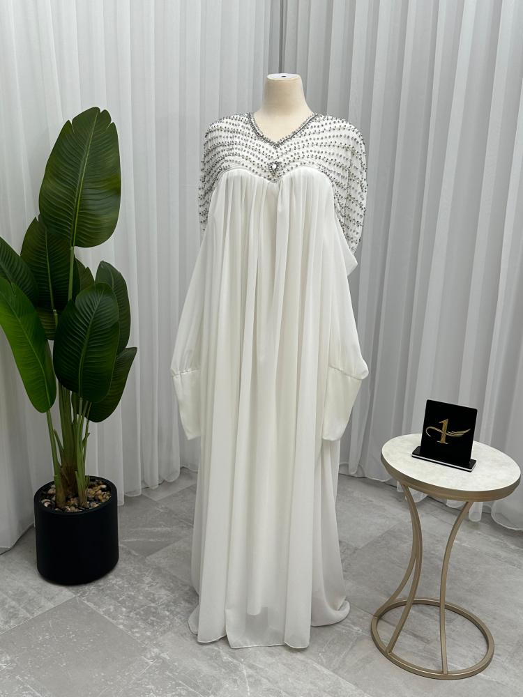الخامة: شيفون جورجيت + تطريز يدوي على نفس القماش