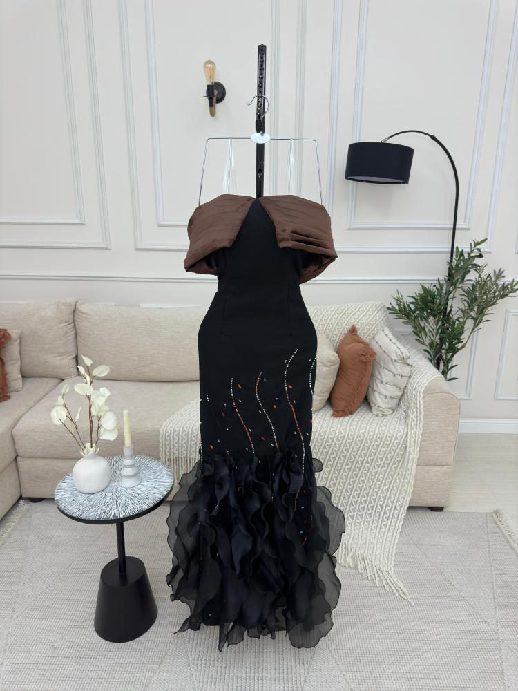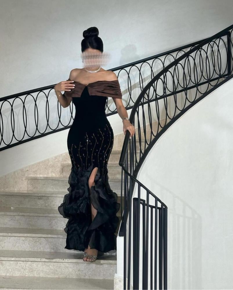 الخامة : كريب استرتش مع تداخل التفته وايضا الجزار الساده بتطريز يدوي