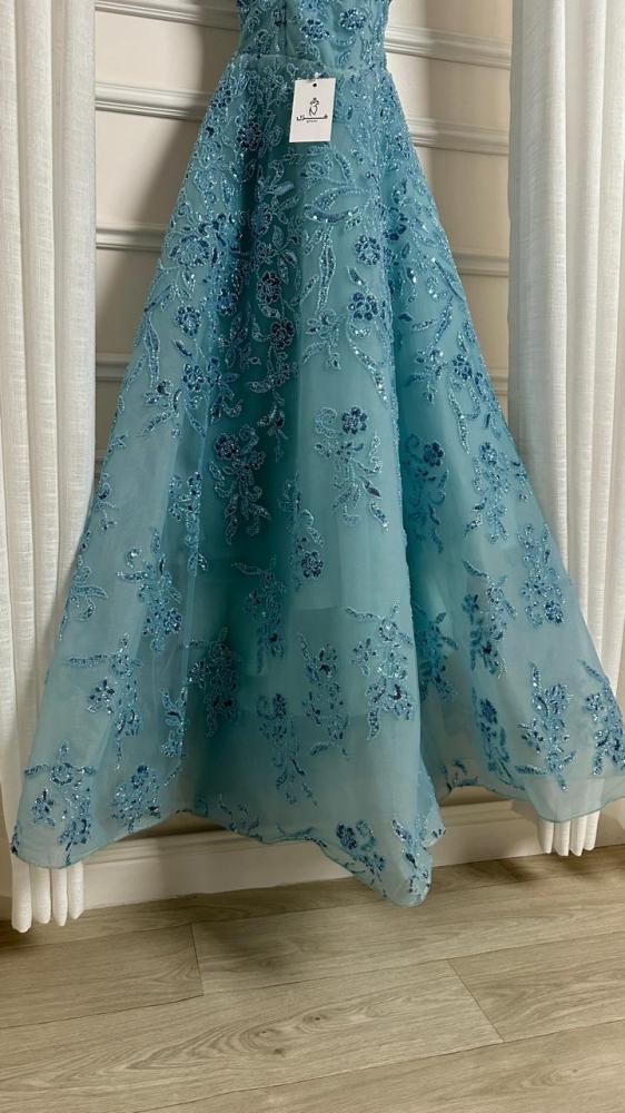 فستان سهره فاخر من تل مطرزخرز شك يدوي بتفاصيل دقيقة تبرز فخامة
