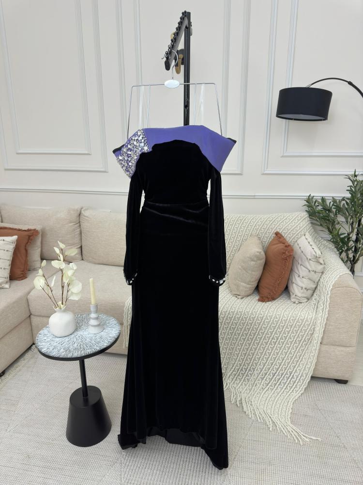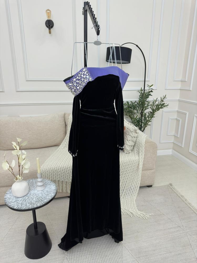 فستان مخمل كوري اسود
